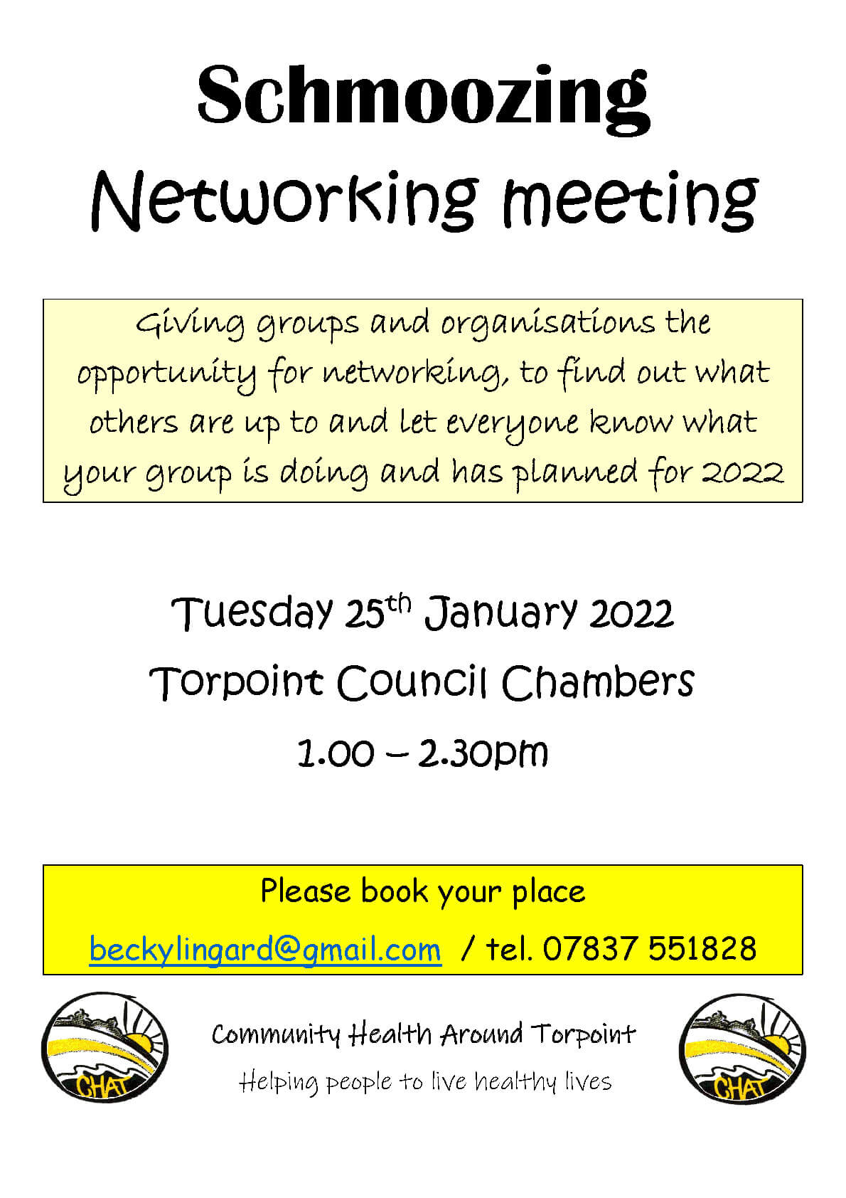 Networking meeting that plans to provide opportunities for networking with other groups. Held at the Torpoint Council…